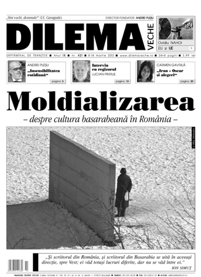 Moldializarea – cultura basarabeană în România este tema de săptămîna aceasta a revistei Dilema veche. Despre cît de bine se cunosc cele două culturi, română şi basarabeană, scriu, printre alţii, Paul Cernat, critic literar, Mihai Plămădeală, muzician, Mitoş Micleuşanu, pictor şi scriitor, Lina Vdovîi, senior editor la Opinia Studenţească.