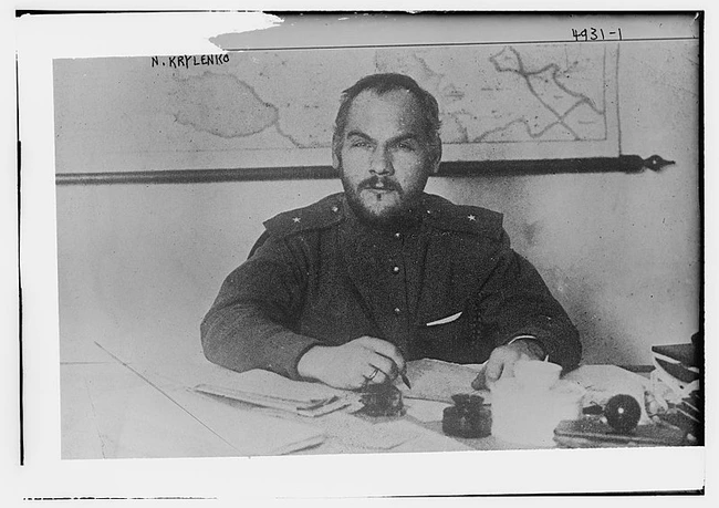 Foto: Nikolai Krîlenko la birou, 1918 / Wikimedia Commons.