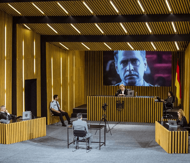 Bobi Pricop poziţionează unele personaje cu spatele la public, arătîndu-le chipul în prim-plan, pe un ecran de dimensiuni mari. Este o multiperspectivare care sugerează că adevărul este subiectiv. Acuzatul (Theo Marton) este profund tulburat, deşi face eforturi să-şi păstreze siguranţa cazonă. Martorul militar (Mihai Crăciun) funcţionează exact pe dos: impasibilitatea sa este rareori traversată de emoţie. Soţia uneia dintre victime (Ale Ţifrea) este împietrită de durere, la propriu: chipul este inexpresiv, secătuit de suferinţă. Avocatul acuzatului (Richard Balint) este cel mai ludic, intervine în forţă, cu nerv, dar fără să se emoţioneze. În schimb, procuroarea (Elena Purea) îşi păstrează aparenţa de „stîncă“, deşi argumentele ei trădează emotivitatea. Tronînd în fundal, deasupra tuturor, judecătoarea (Monica Ristea) are un calm imperturbabil, sub care nu se prea poate ghici ce se ascunde. Personajele jonglează astfel cu impasibilitatea şi emoţia, iar măiestria lor în a ascunde ce nu vor să se vadă îi vizează direct pe juraţi, adică publicul, care votează verdictul.