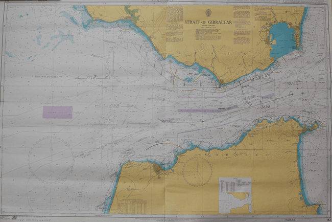 Am deschis febril sertarele în care nădăjduiam să găsesc teancuri de hărți. Toate erau goale. Doar în ultimul, cel mai de jos, se afla o hîrtie groasă, de culoare albă, cam de un metru lungime, pliată în două jumătăți, una fiind marcată într-o margine de sigla ovală a celebrului Hydrographic Office, de numărul hărții și de faimosul cuvînt Admirality. Totuși, o vreme am privit-o neîncrezător. Dar pentru că lîngă numărul înalt de-o șchioapă figura, cu fonturi precis tipărite, și subiectul hărții – Strait of Gibraltar –, am convenit că mă aflam în fața unei hărți adevărate.